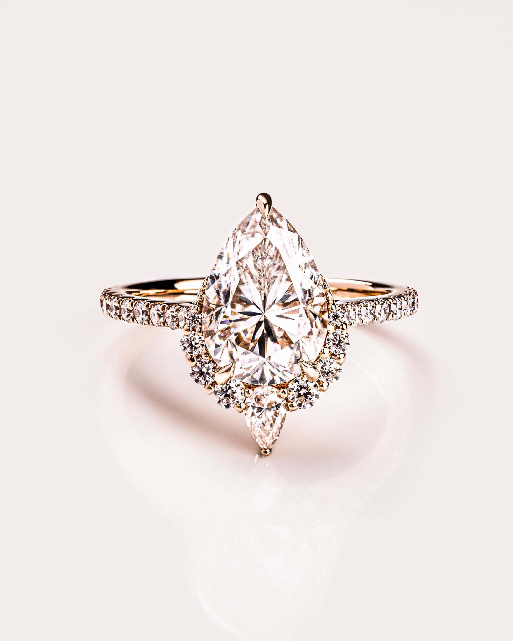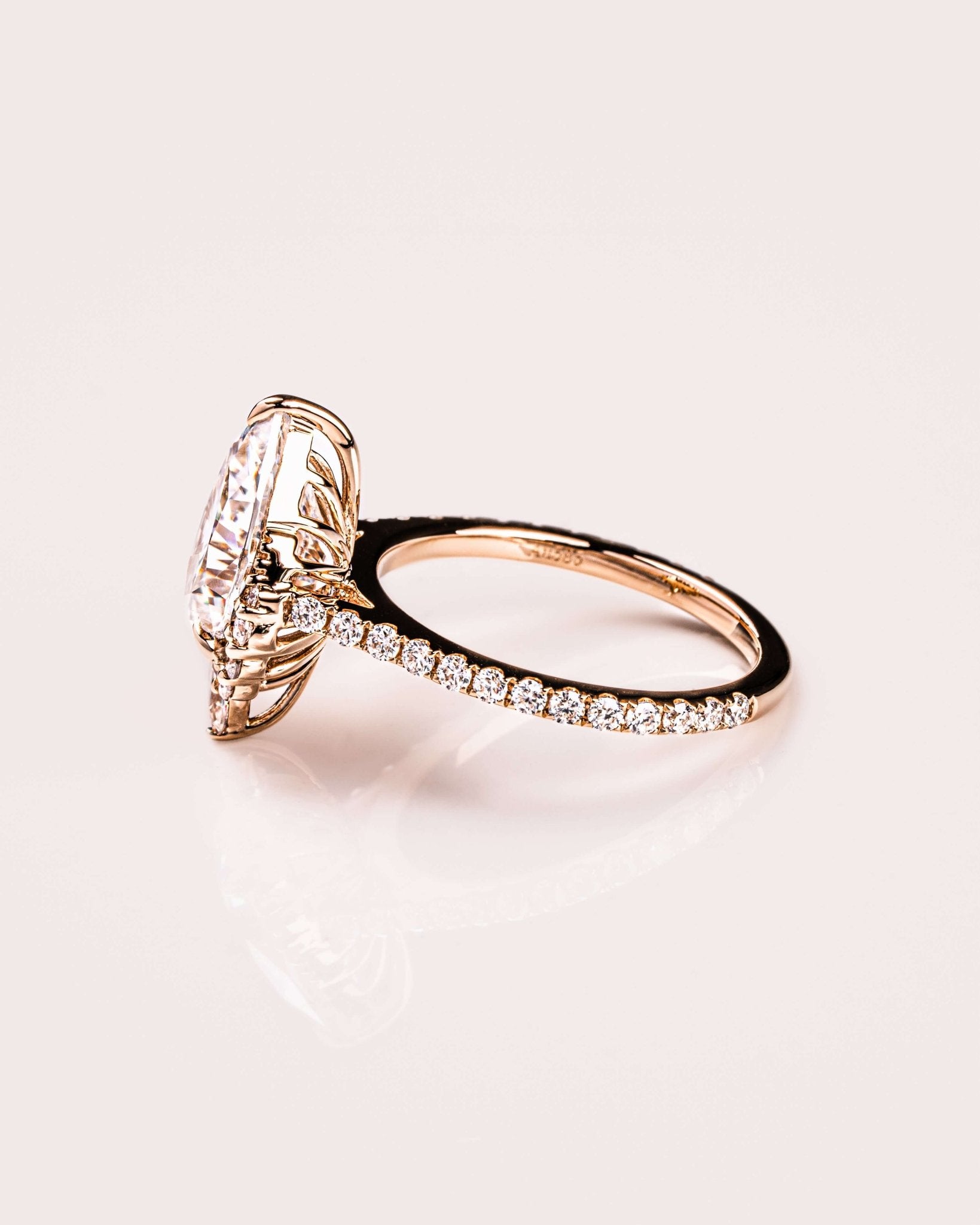 Please note that all of our standard ring settings come with moissanite accent stones (band pavé stones, halo stones, hidden halo, etc.) even if you select a lab-diamond center stone. If you are interested in lab-diamond accent stones, our team can provide a quote based off of your order after your order has been placed. Please notify our team of your interest for lab-diamond accent stones in the notes section of the order, or via email at team@zenmoissanite.com