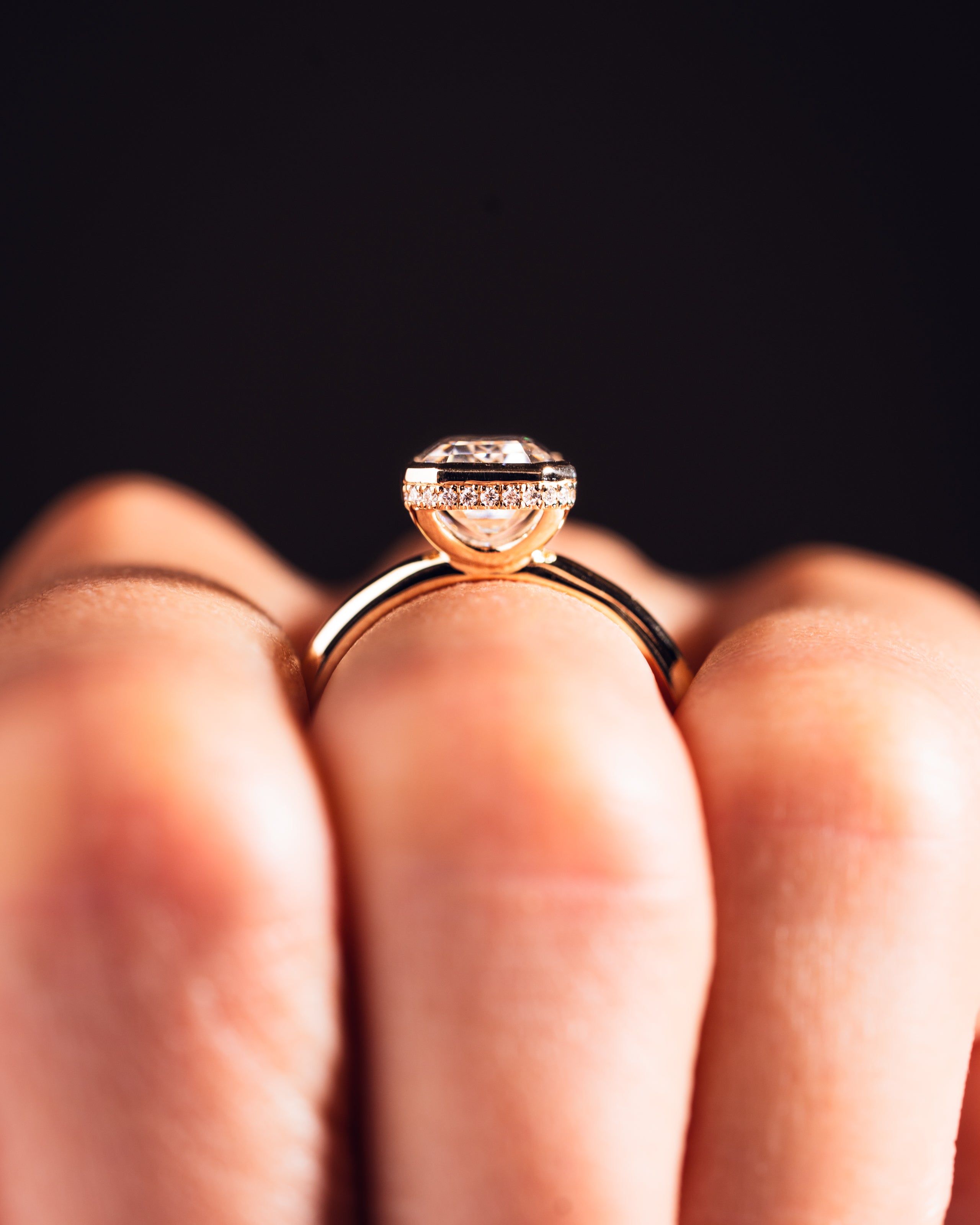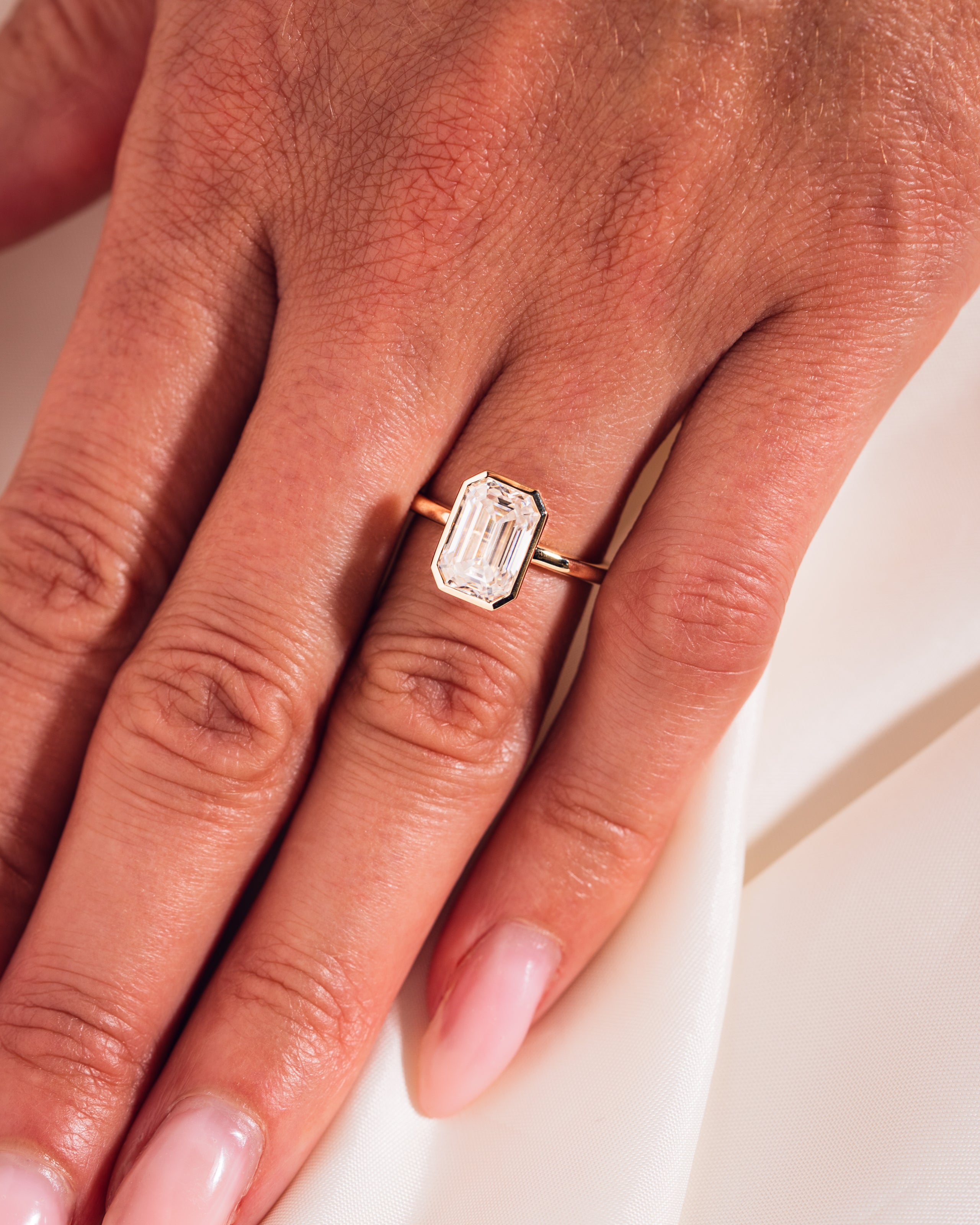 Our ring sizes are available in full, half, and quarter size increments, so if you fall in between sizes, we can accommodate! If you’re hesitating between two sizes, we typically recommend opting for the bigger option.