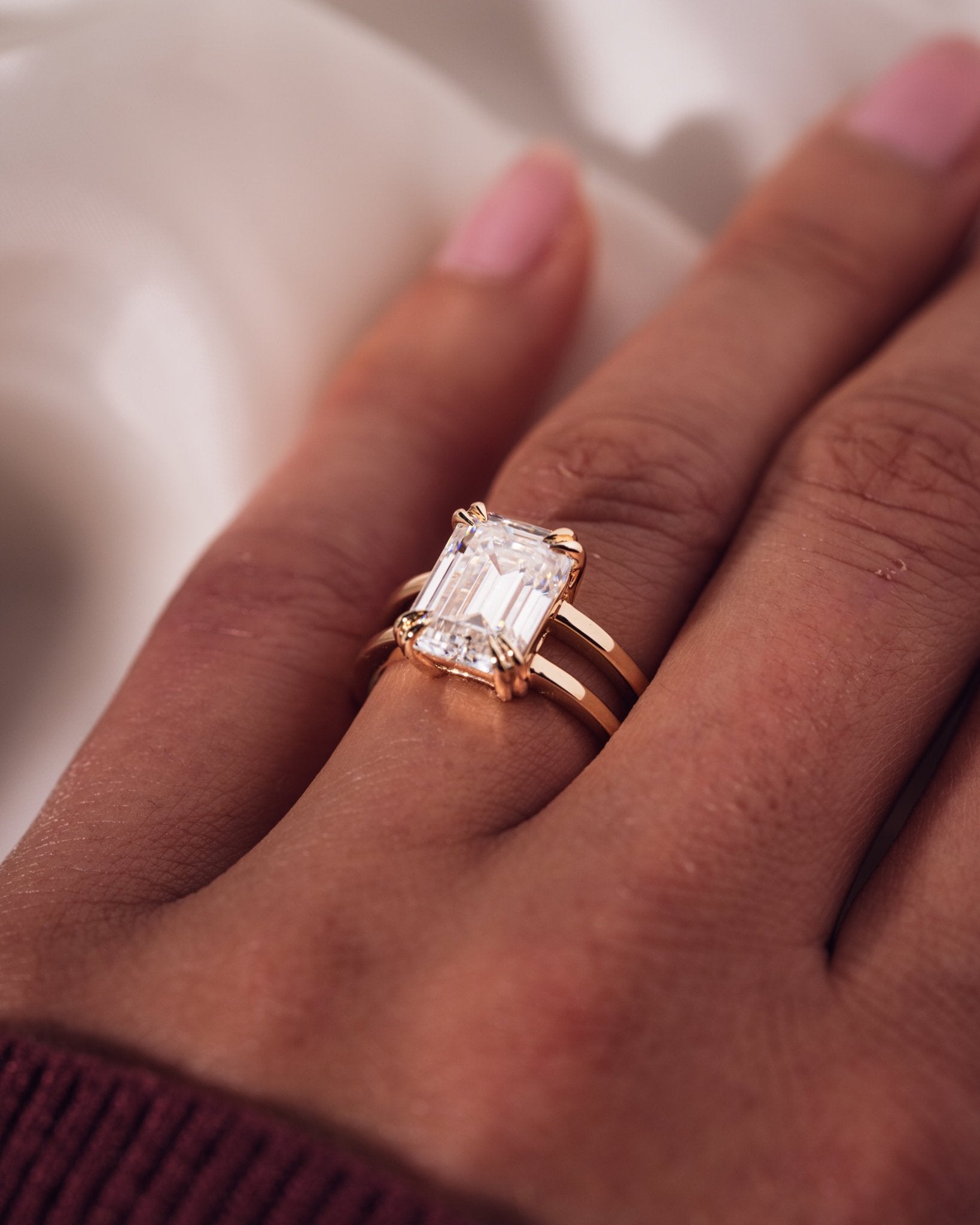 Our ring sizes are available in full, half, and quarter size increments, so if you fall in between sizes, we can accommodate! If you’re hesitating between two sizes, we typically recommend opting for the bigger option.