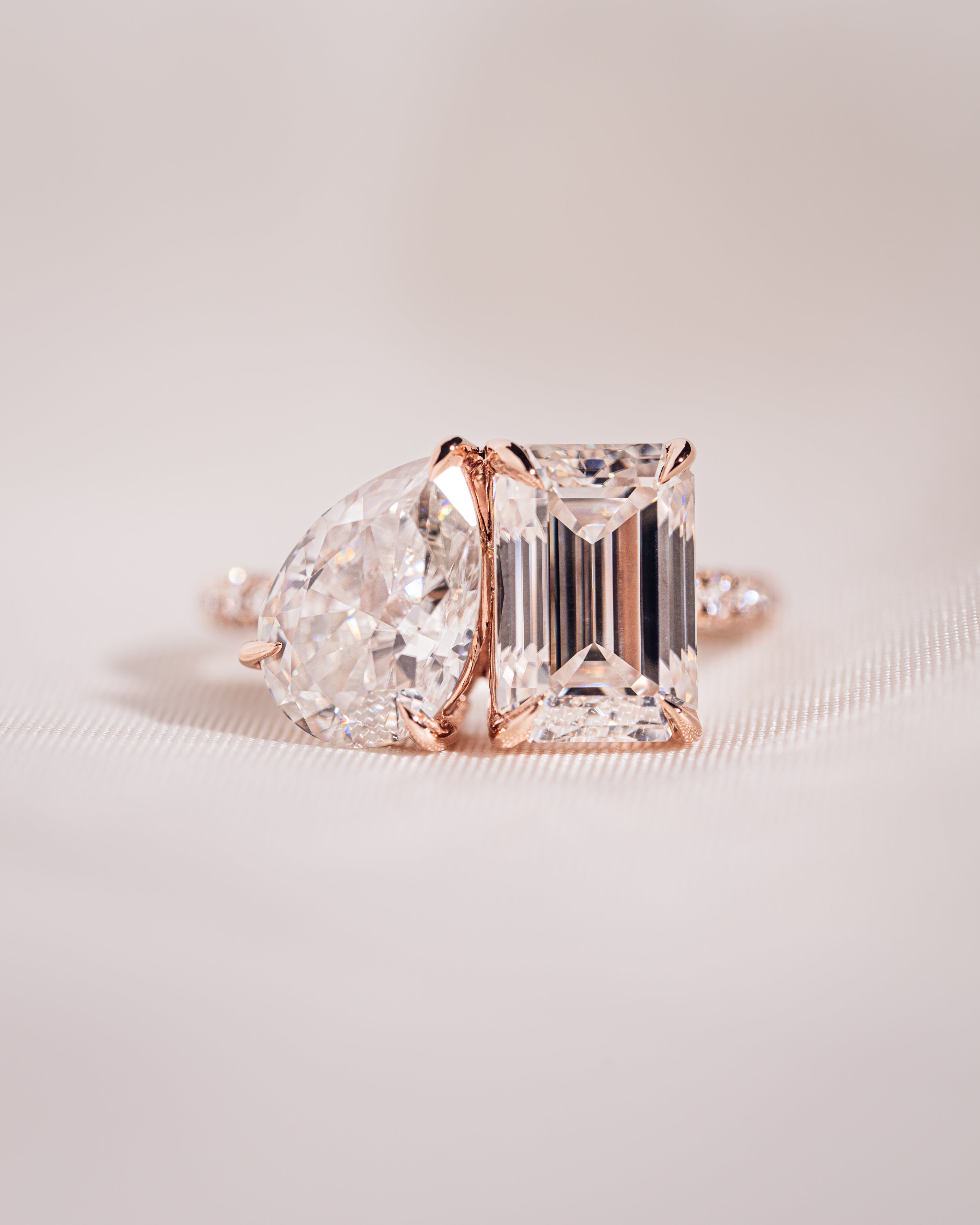 Yes! Unless you specifically upgrade to a lab-diamond hidden halo and/or lab-diamond pavé band in our “Bespoke Customization” section, the small gems will be moissanite.