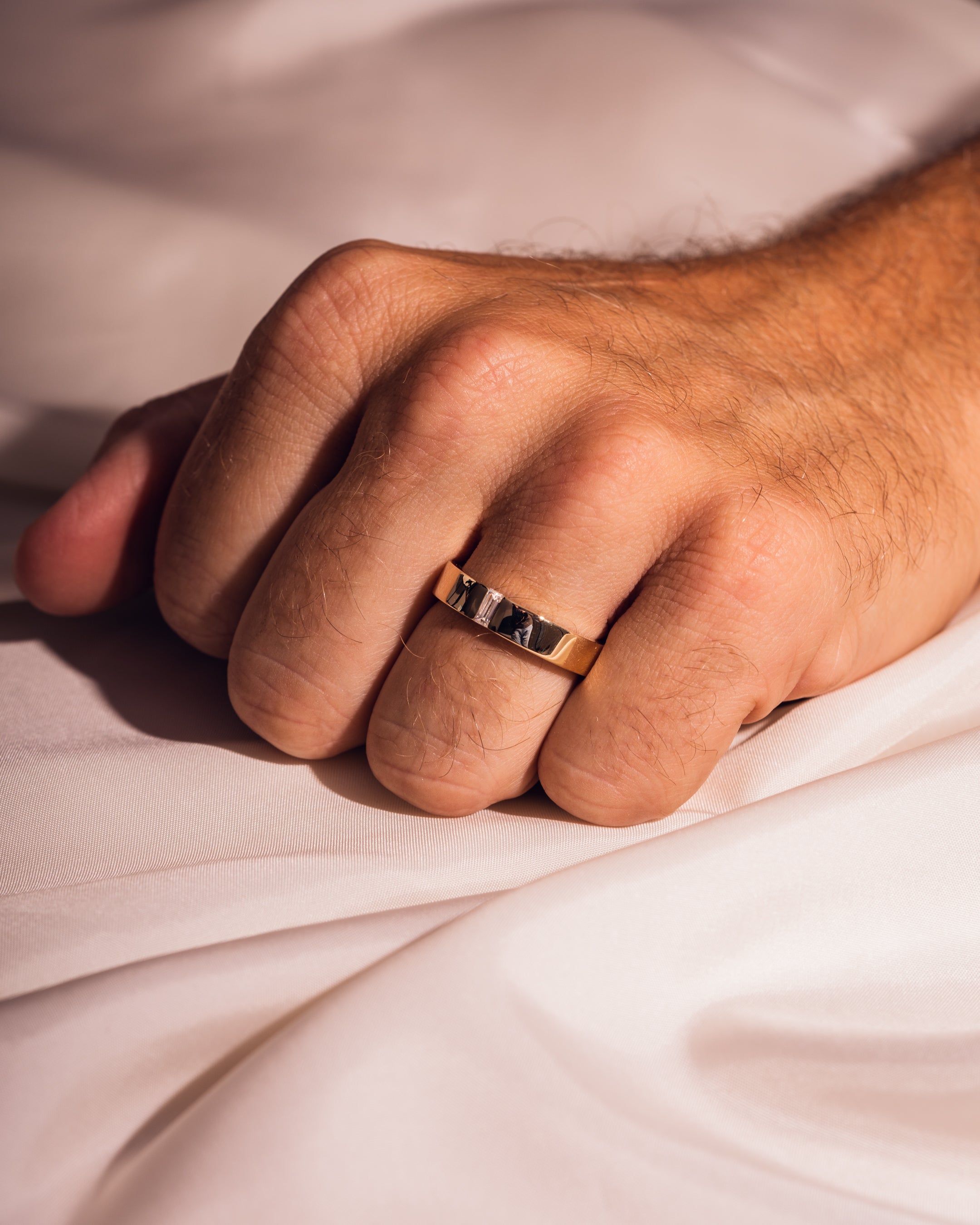 Our production timeline takes 8 weeks (on average) from the order date. That said, we recommend clients order their wedding bands 10-12 weeks ahead of time to avoid any potential unforeseen delays and unnecessary stress before their big day.