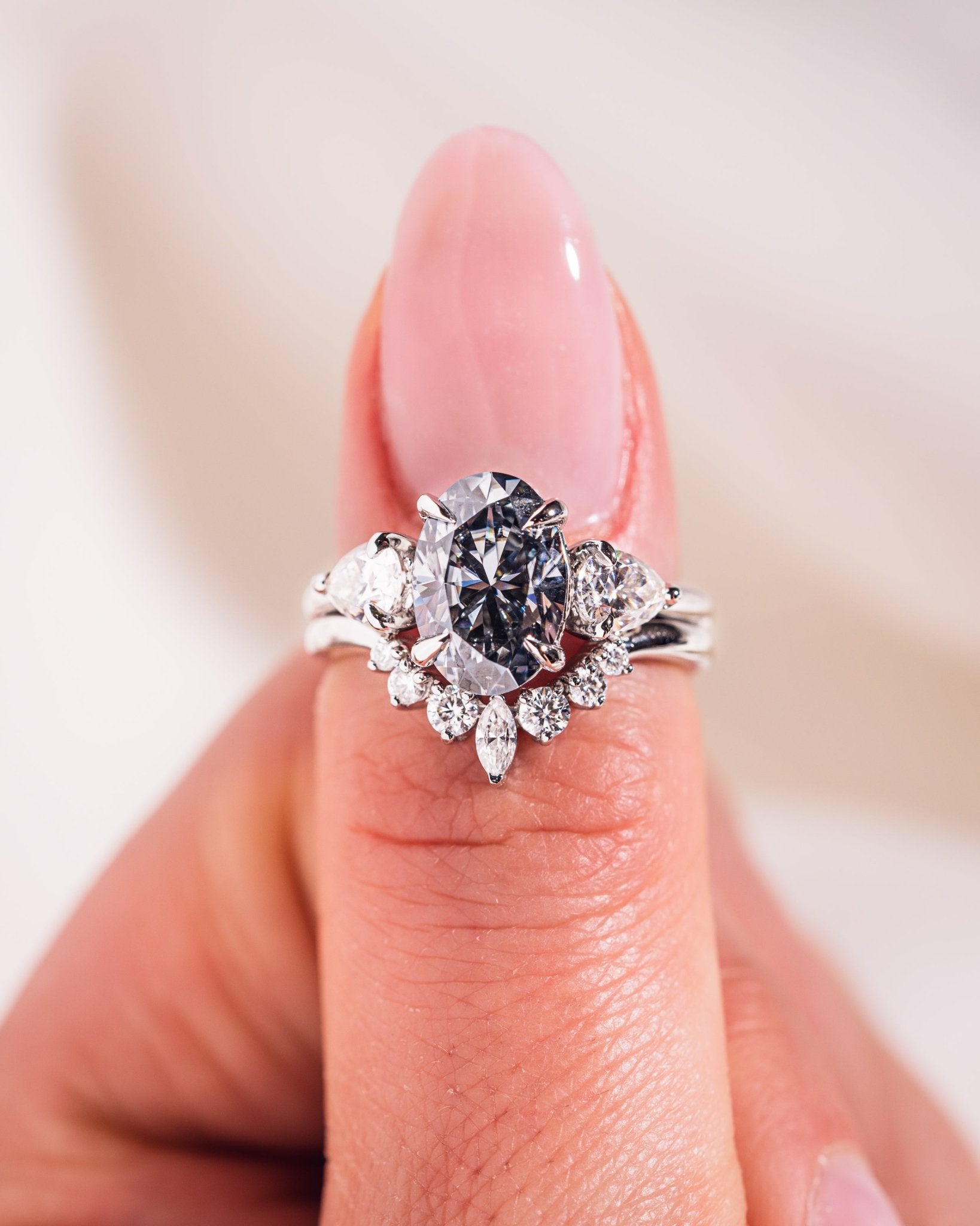 Hannah - Oval (Grey) & Pear - Zen Moissanite Hannah - Oval (Grey) & Pear - Zen Moissanite