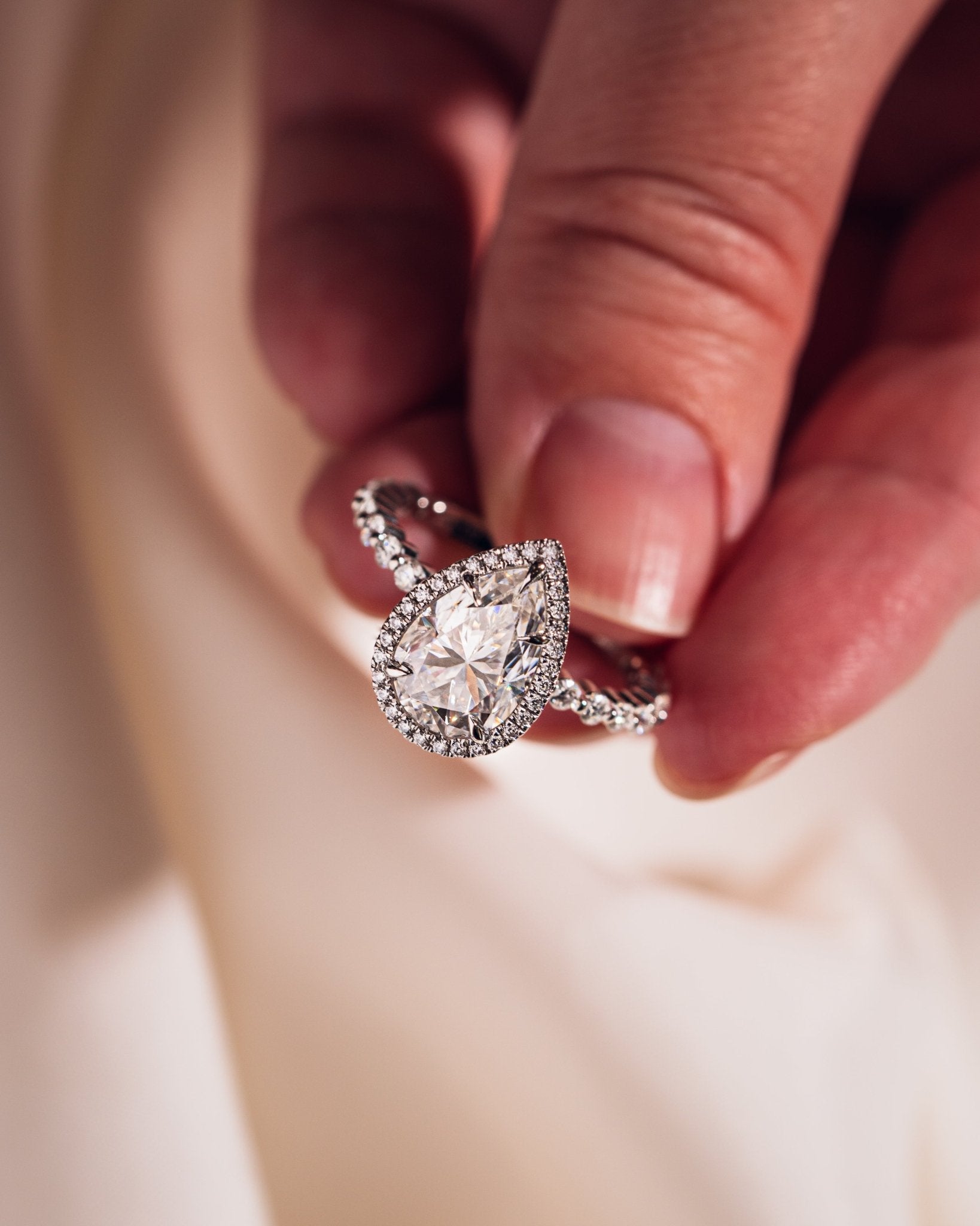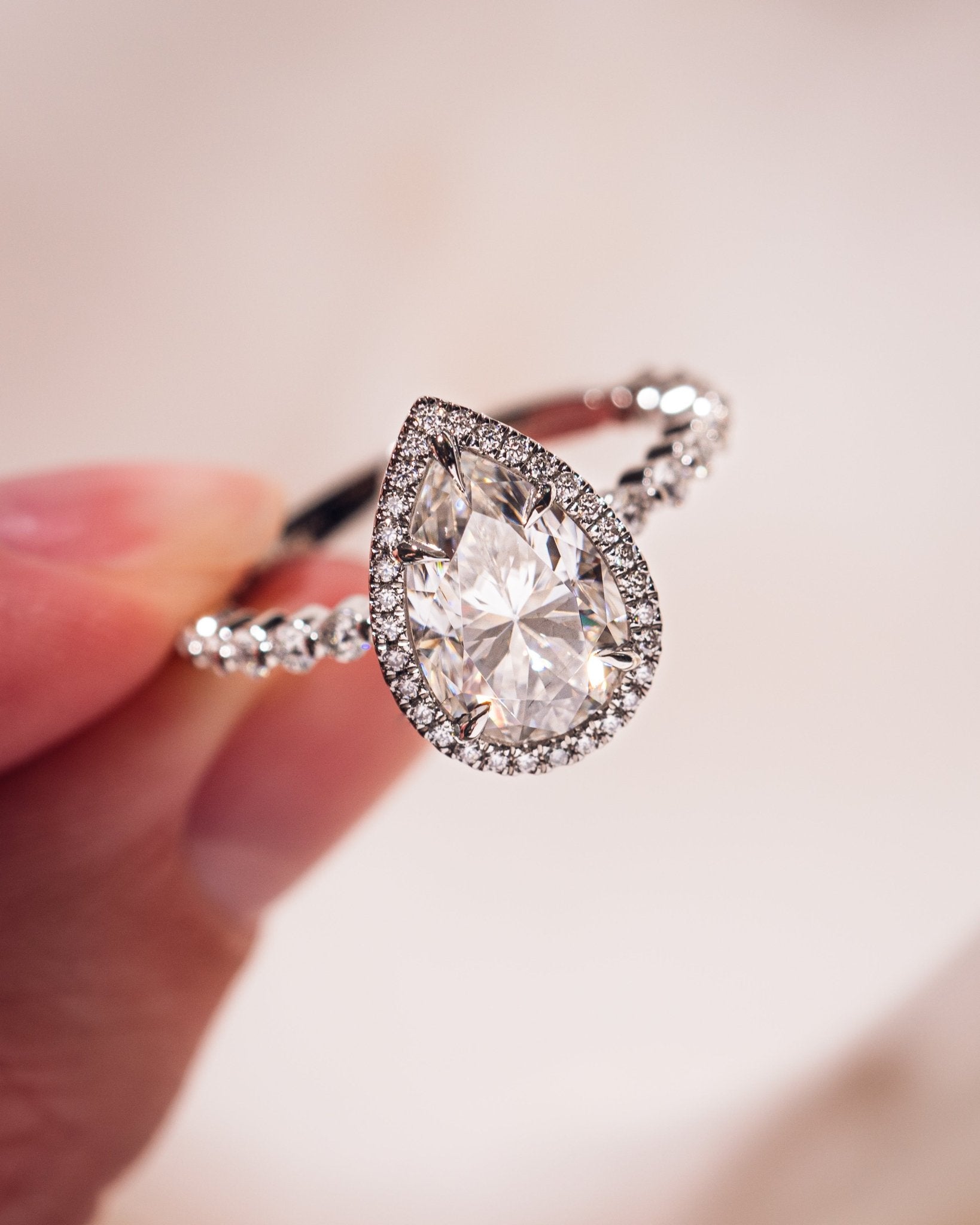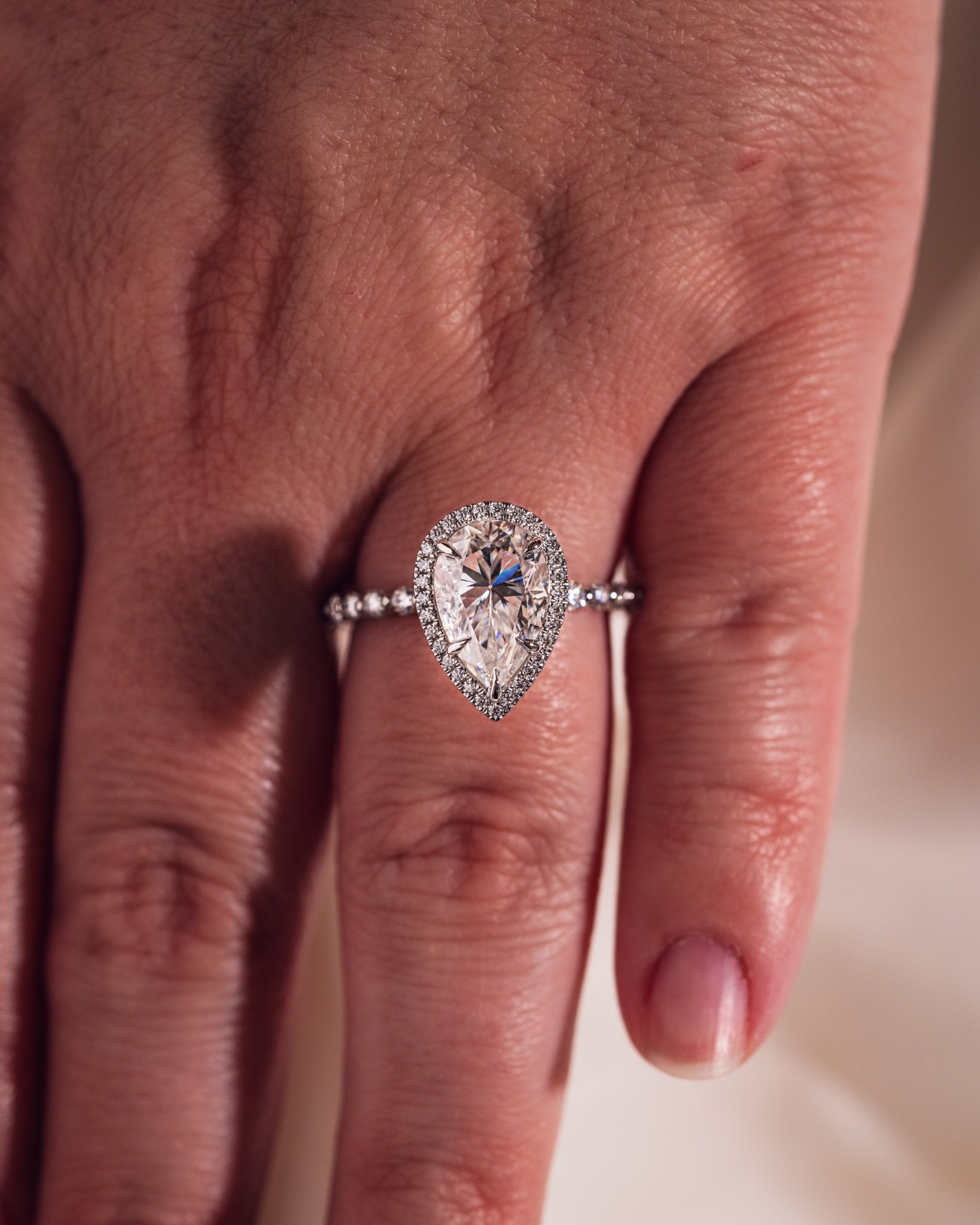 • Pour toute accumulation d'huile, nous vous recommandons de nettoyer votre moissanite avec un produit de polissage pour argent. La crème pour argent de Wright est une excellente option.