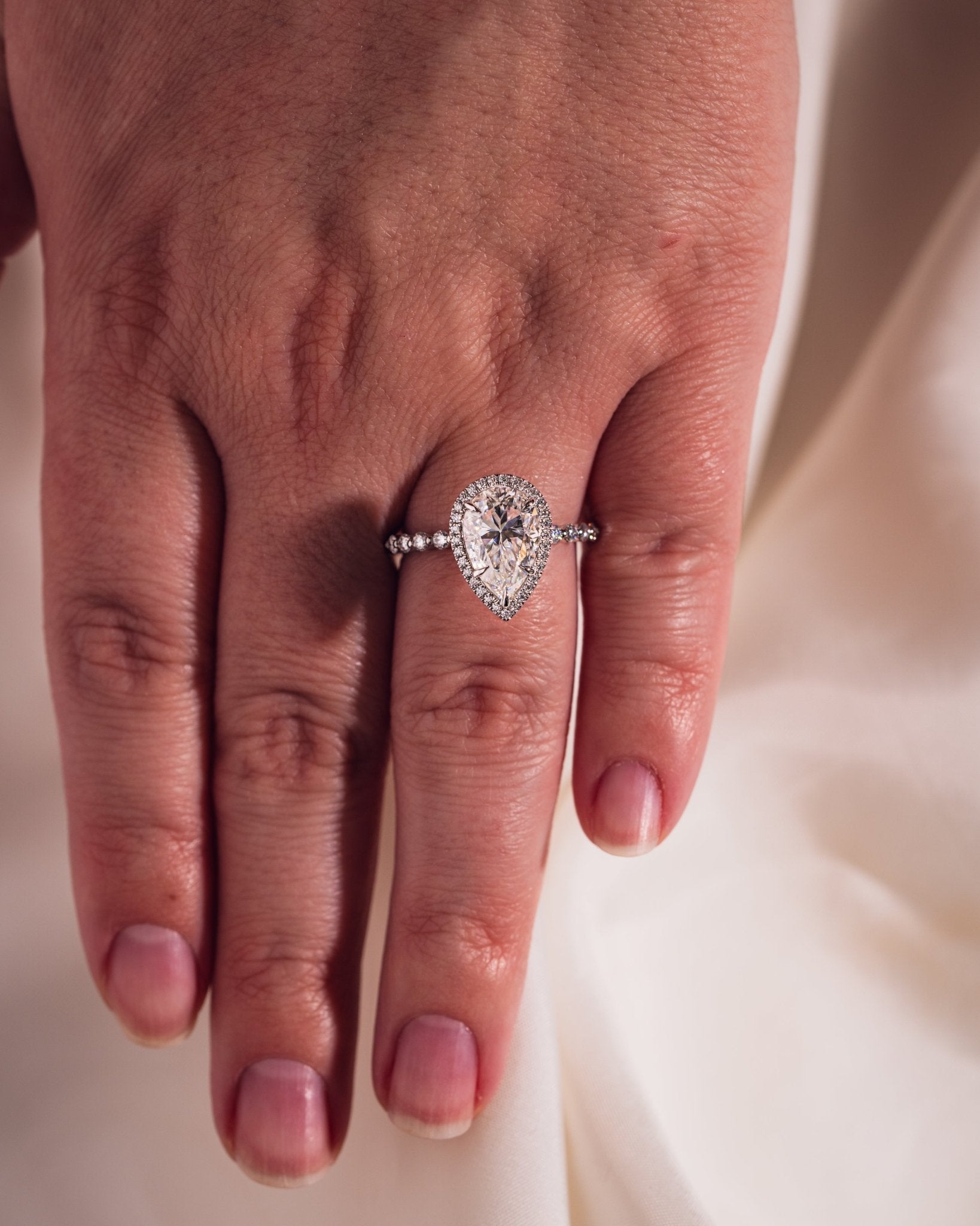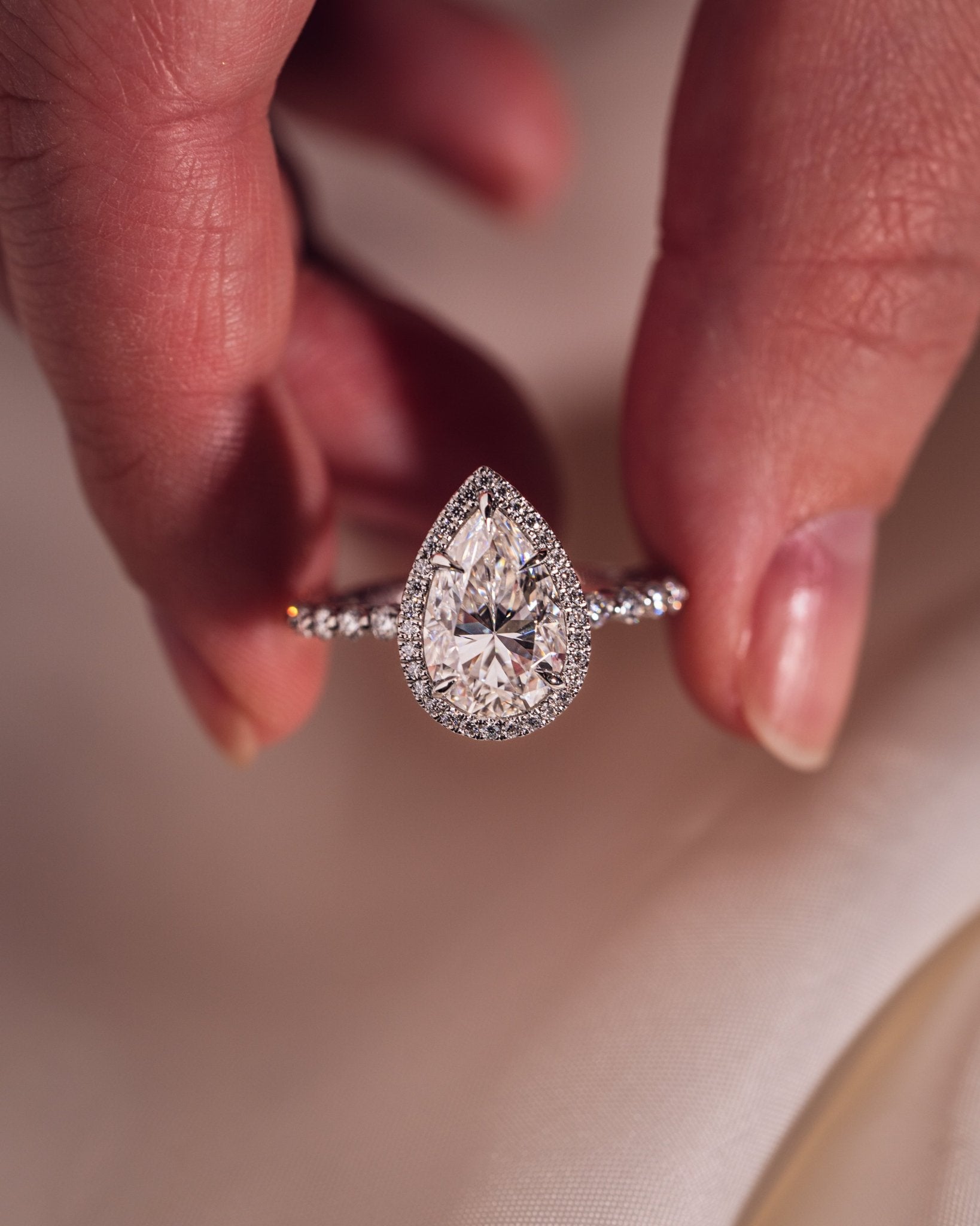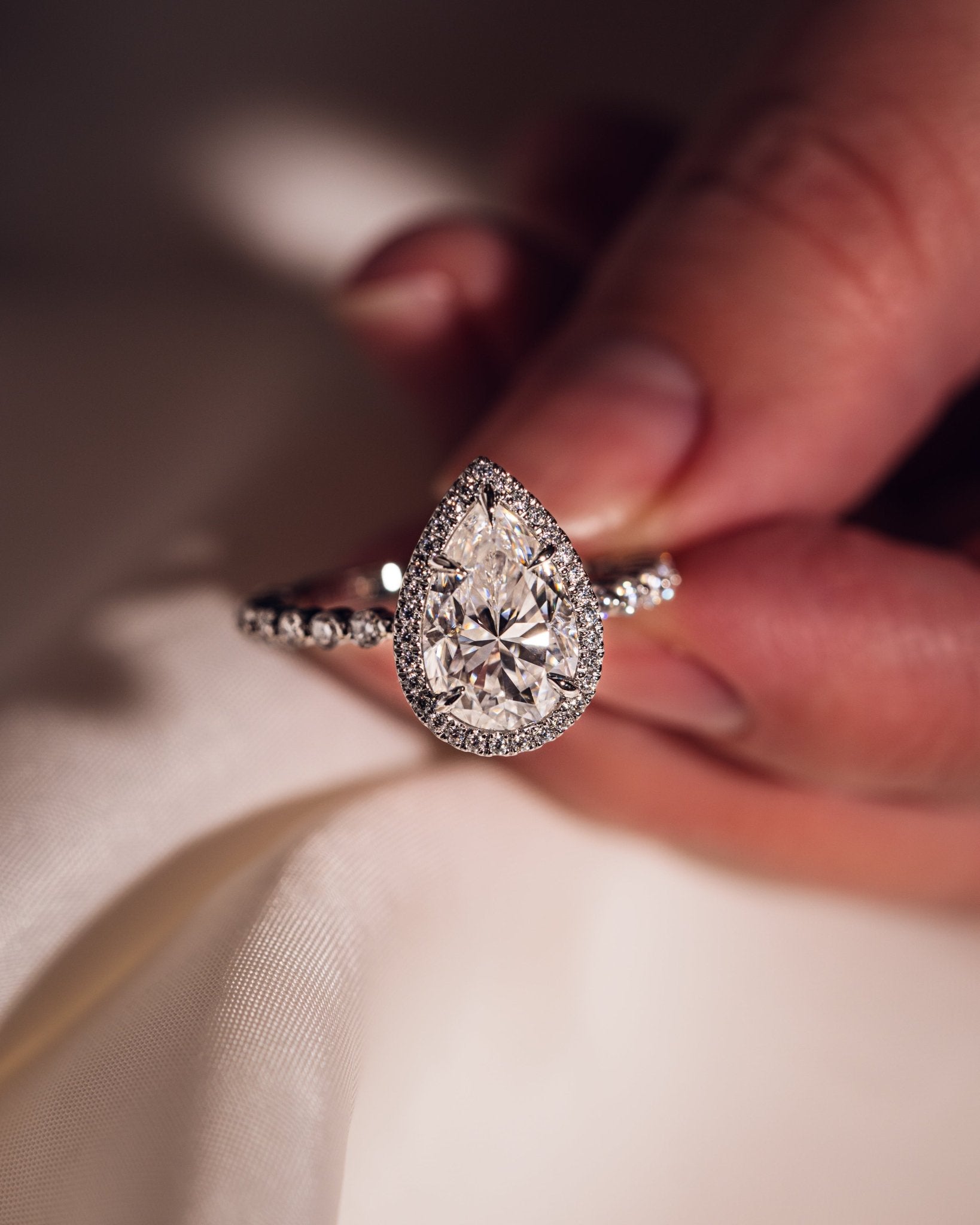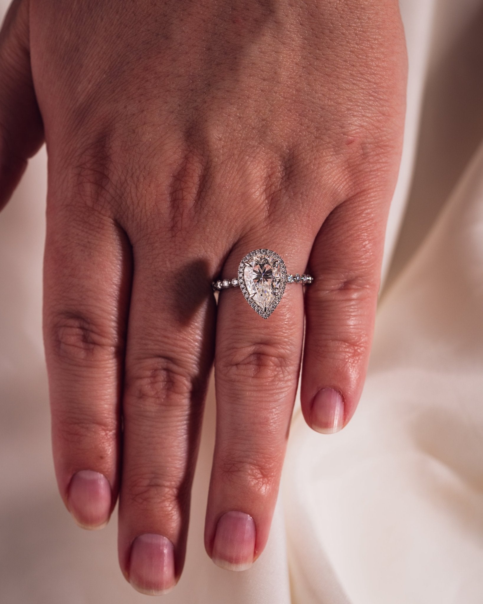 • Pour toute accumulation d'huile, nous vous recommandons de nettoyer votre moissanite avec un produit de polissage pour argent. La crème pour argent de Wright est une excellente option.